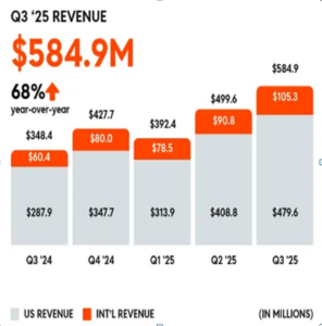 In terms of revenue, Reddit generated $585 million in Q3, a 68% year-over-year increase.