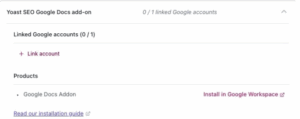 3. Under Included in this subscription, open the Yoast SEO Google Docs add-on