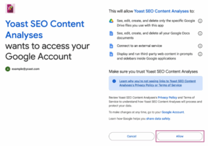 To allow the Yoast SEO Google Docs add-on to work, you’ll need to grant permissions to several sharing services.